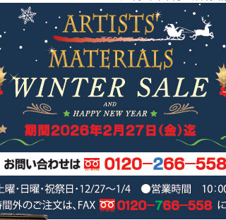 画材・額縁ウィンターセールのご案内 日頃より創作活動に励む皆さまへ。 当ショップでは、制作環境の充実を応援する「毎年恒例のウィンタ...
