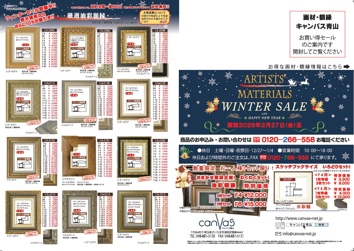 日頃より創作活動に励む皆さまへ。 当ショップでは、制作環境の充実を応援する「毎年恒例のウィンターセール」を実施いたしております。普段はダイレクトメールだけのアナログセールですが今年はホームページでもご紹介させていただきます。